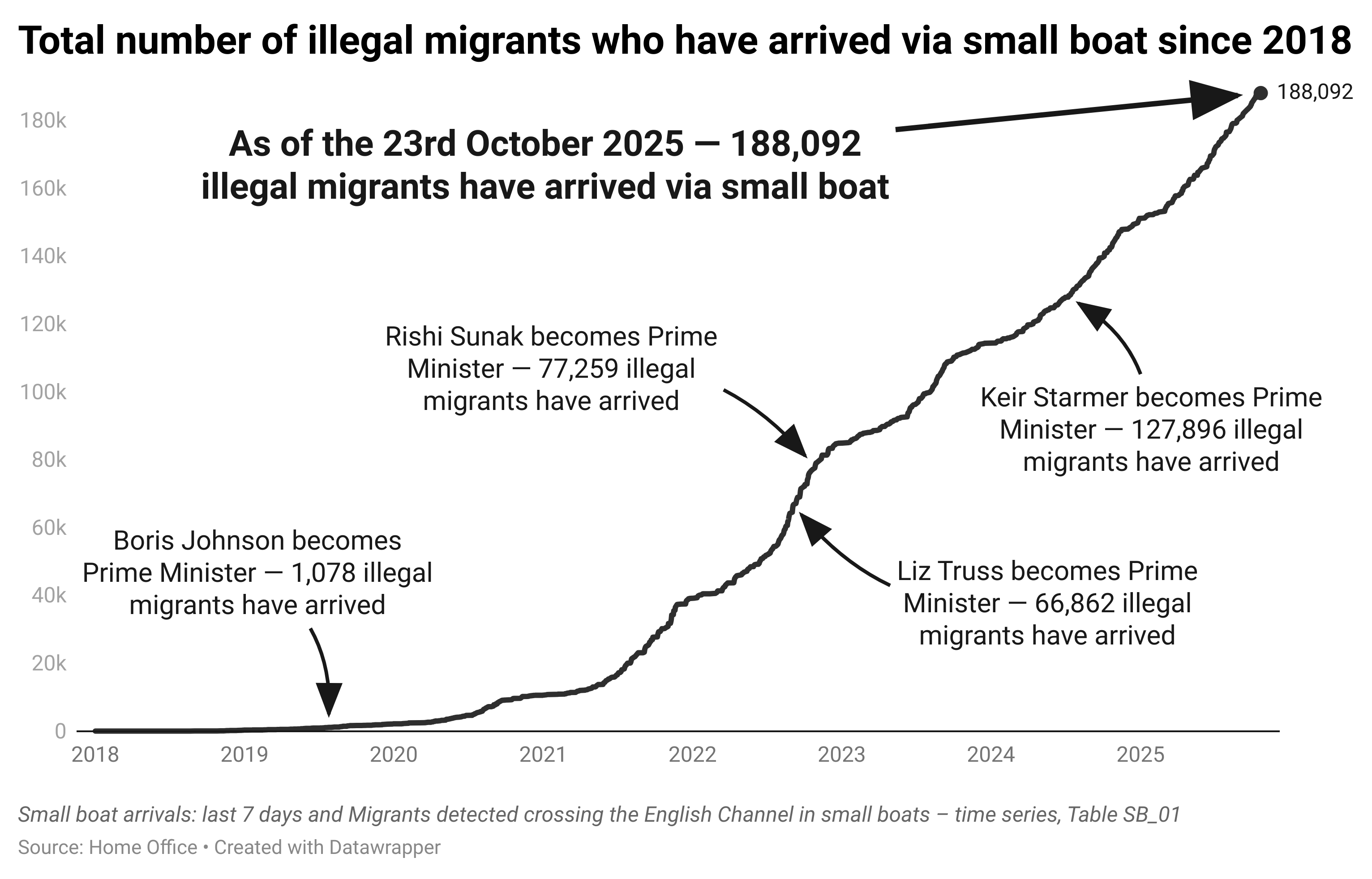 The decadal censuses are also unlikely to count the illegal immigrant population. Back in 2020, Pew Research released a report that estimated at the end of 2017 there could have been as many as 1.2 million illegal immigrants in the UK. Pew have recently revised this figure down, now estimating between 700,000-900,000 illegal migrants living in the UK at the end of 2017. Regardless, the figure is certainly much higher now. Since 2018, over 180,000 illegal migrants have arrived via small boat alone, and that’s before we consider those who arrived via lorry, undetected boats, other routes, or overstay their visa.