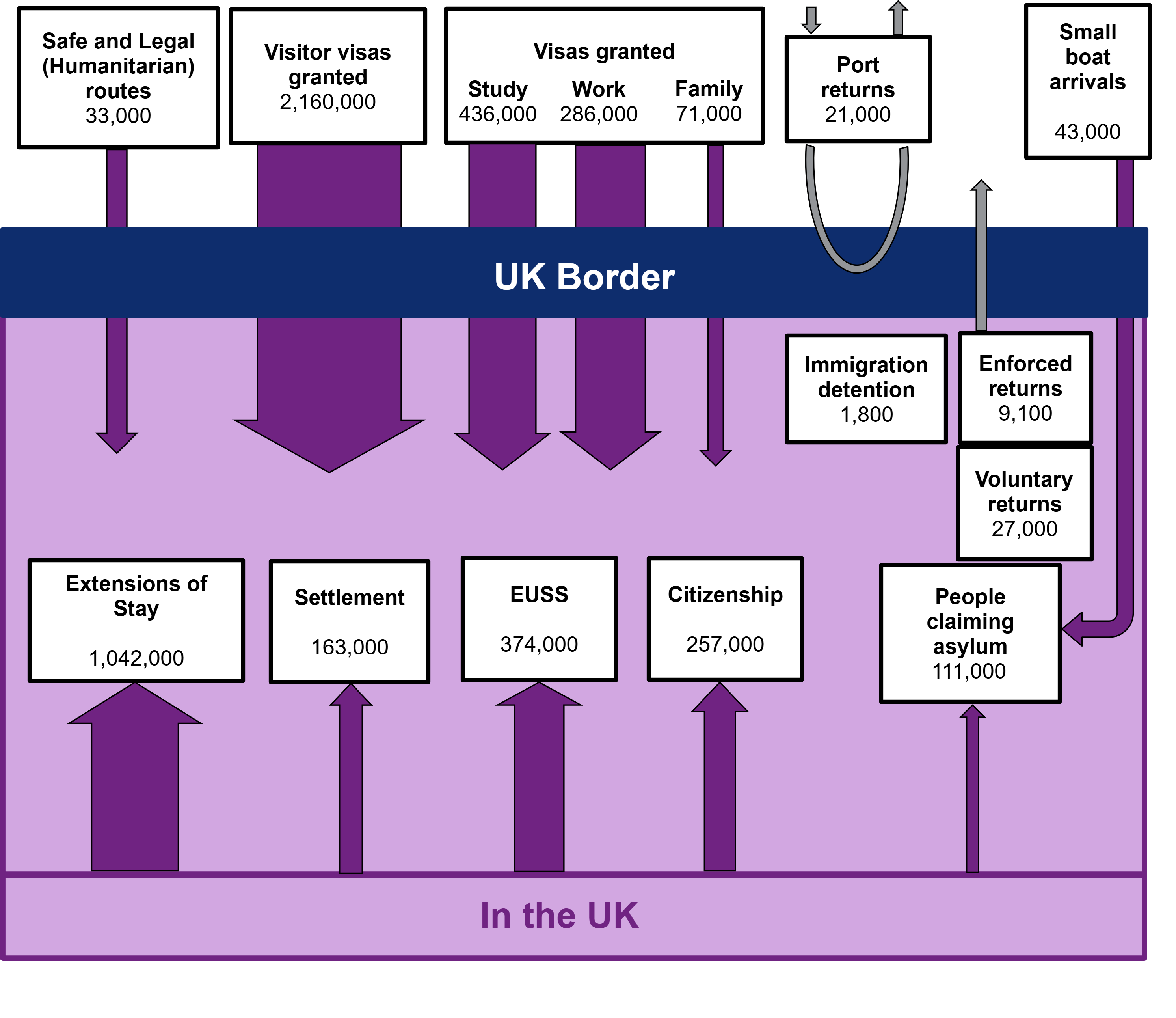 Irrespective of illegal migration, which remains a major issue, the main driver of demographic change in the UK has always been legal migration. Between June 2024 and June 2025, the Home Office extended over 1 million existing visas, granted 436,000 new study visas, 286,000 new work visas, 71,000 new family reunification visas, granted settlement (Indefinite Leave to Remain) to 163,000 people and handed out citizenship to 257,000 people — all in just twelve months.