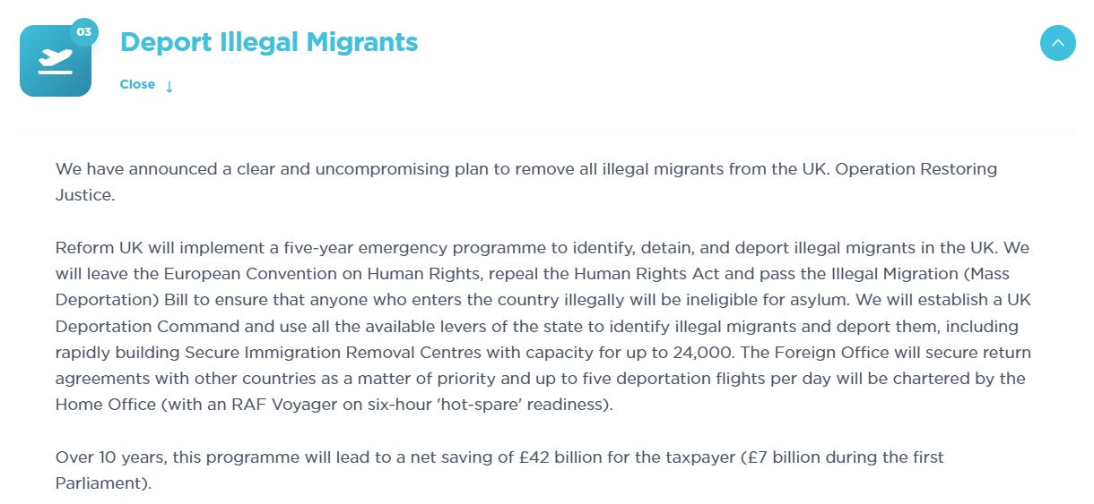 It would be wrong not to address perhaps the most common source of criticism against Reform and Farage in particular on immigration, which is his comments towards the end of 2024 on mass deportations: