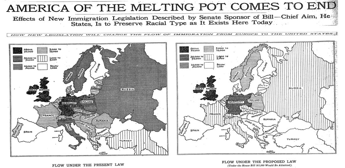 The rapid, unaccounted for definitional shift in what the terms ‘America’ and ‘American’ connote can be best understood through two monumental federal immigration laws passed, and in one case repealed, during the early- and mid-twentieth century. In the ’20s, Americans were uneasy at the rapid pace of demographic change as a result of the great wave of immigration, disproportionately from Eastern and Southern Europe, during the late-nineteenth and early-twentieth centuries. Even though these newcomers were overwhelmingly European Christians of various kinds, many Americans felt that they were culturally distant enough from the older Anglo-Protestant stock that having the foreign-born represent nearly 15% of the population was problematic. They feared, for instance, Catholicism changing moral and political habits, or ethnic and linguistic barriers creating ghetto-like parallel societies. The Federal Government answered those concerns. In his 1923 annual message, President Calvin Coolidge pledged that ‘America must be kept American’.